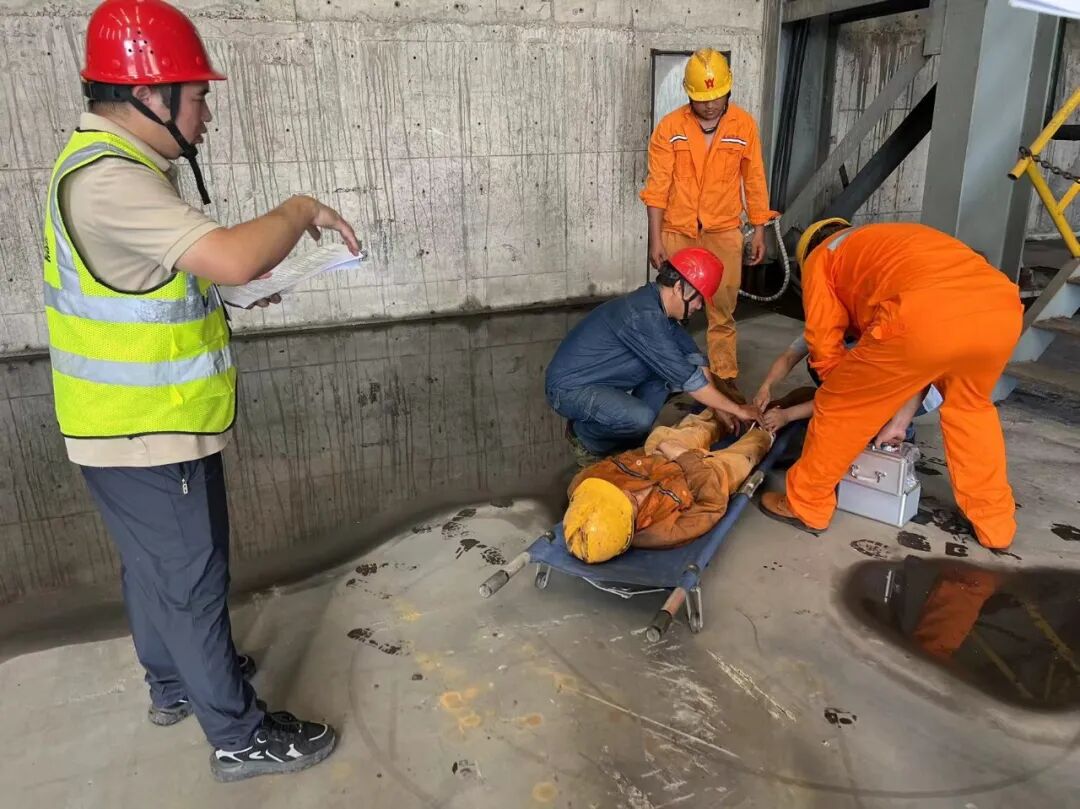演练严格遵循 “实战化、专业化、标准化” 原则,依次开展消防火灾逃生、物体打击及烫伤、有限空间救援、液氧罐体液氧泄漏四个情景的演练。